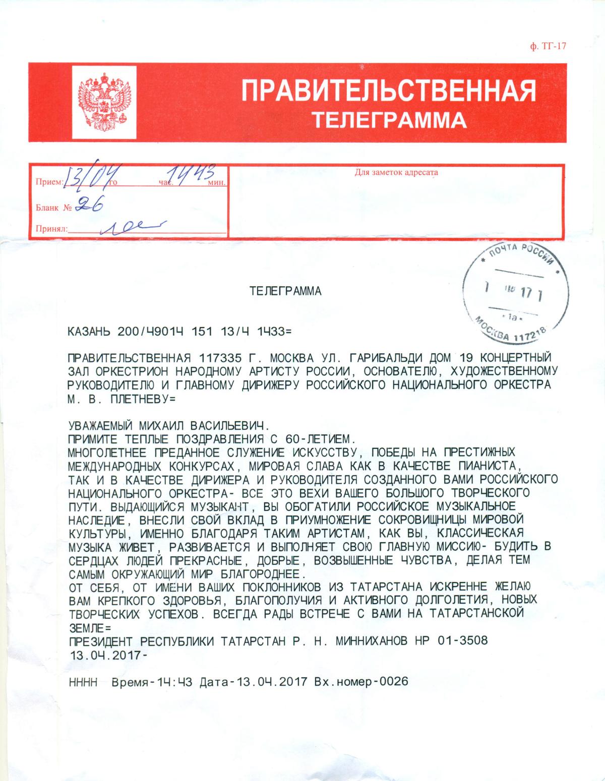 За заслуги в области культуры и многолетнюю плодотворную деятельность Почетной грамотой Президента РФ награжден Сергей Сергеевич Старчеус.