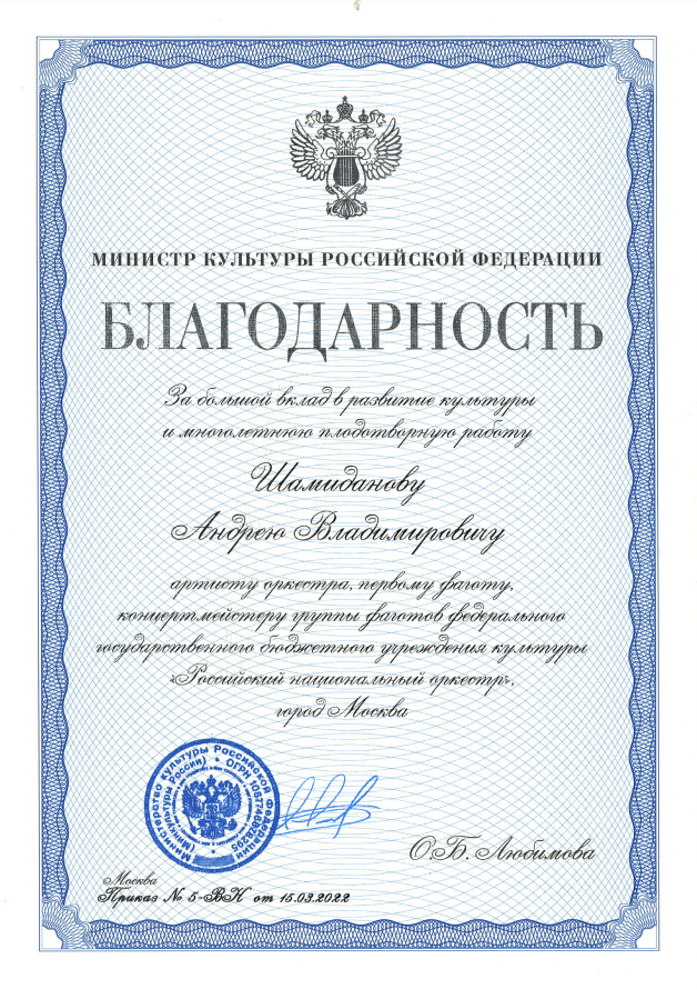 Cолист Российского национального оркестра Александр Акимов удостоен первой премии конкурса Юрия Башмета